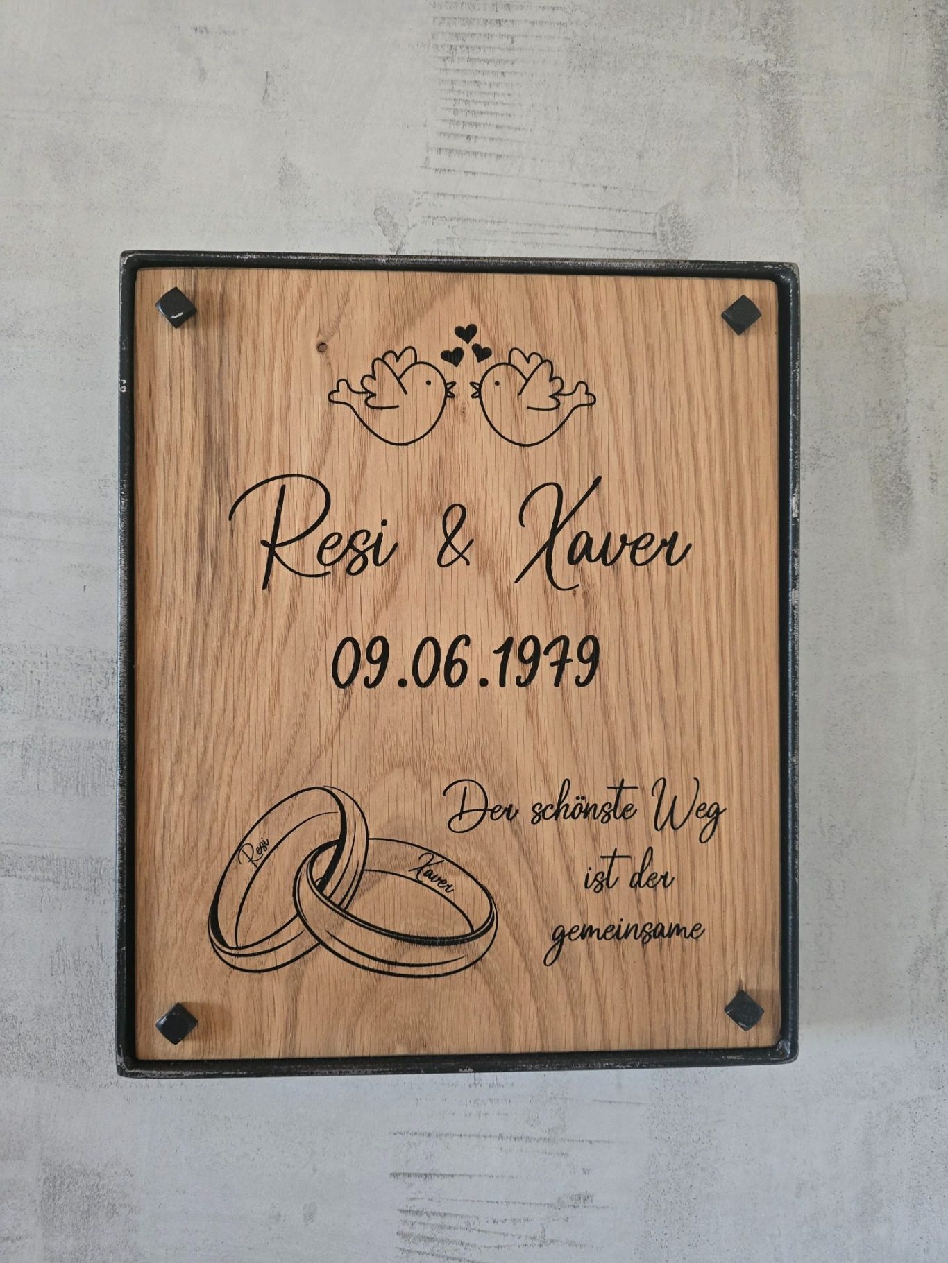 Ein Geschenk, das Liebe sichtbar macht. Manche Momente verdienen einen Platz für die Ewigkeit. Dieses liebevoll handgefertigte Holzbild bewahrt den schönsten Tag zweier Menschen in einer besonderen Form.