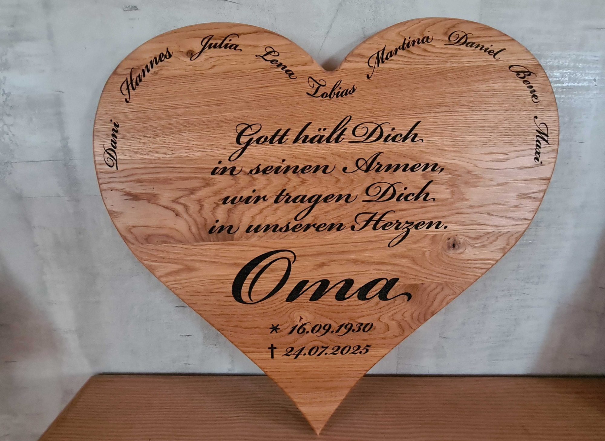 Unser handgefertigtes Abschiedsherz aus hochwertigem Holz ist ein stiller, aber ausdrucksstarker Weg, einem geliebten Menschen die letzte Ehre zu erweisen.