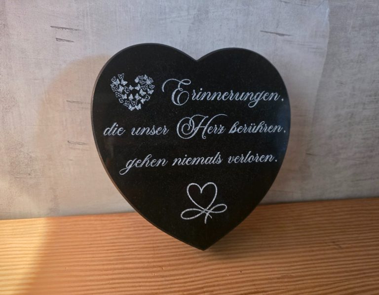 Wenn ein geliebter Mensch geht, bleiben Erinnerungen, Gefühle und die tiefe Verbundenheit im Herzen. Unsere Granitherzen als Grabschmuck sind ein liebevolles Symbol dieser bleibenden Erinnerung.